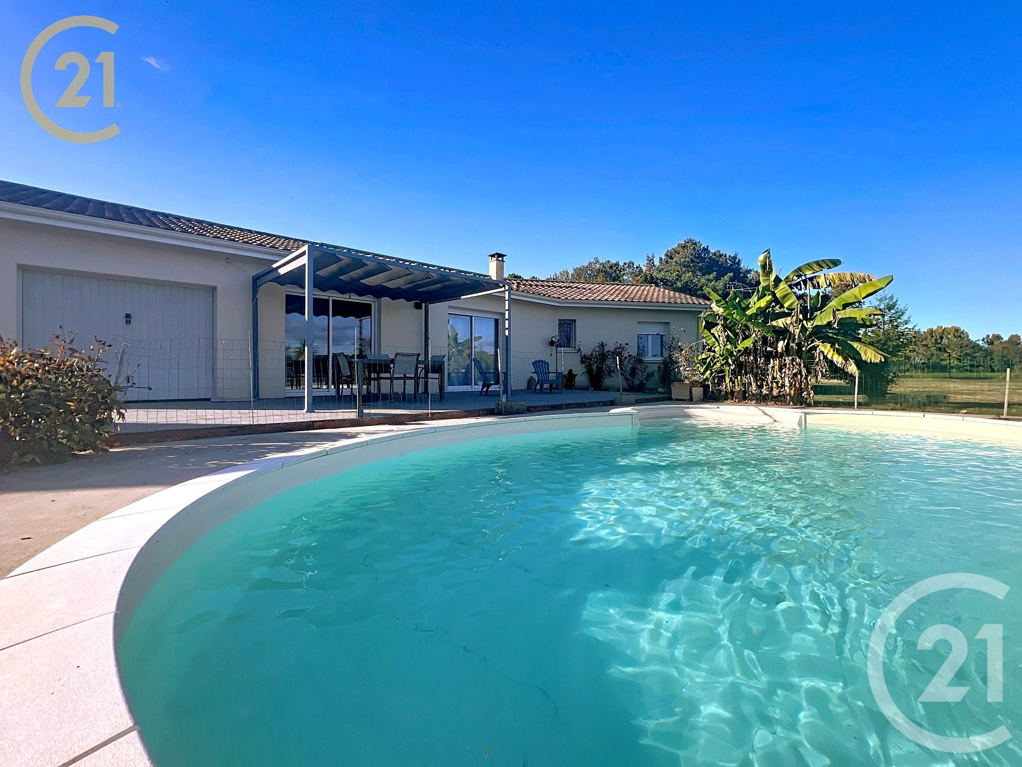 À l'extérieur, un terrain plat, entièrement clôturé, agrémenté d'une terrasse de 30m² et d'une piscine parfaitement intégrée au jardin, idéale pour profiter des beaux jours.
